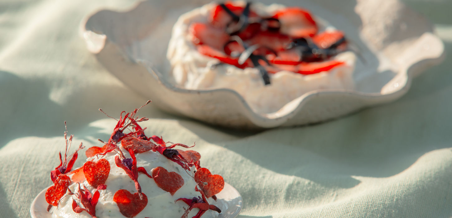 Mise en scène pour un stylisme photo, d’un pique-nique champêtre où l’esprit de la pâtisserie s’invite avec audace dans l’univers du fromage. Savarin détourné en entremets aux fraises et Mahonia du Japon, bûche parée de pétales de framboise, fromage fouetté orné de cœurs et de fleurs de fuchsia… révèlent toute leur gourmandise et transforment l’art du pique-nique en un moment de gastronomie bohème.